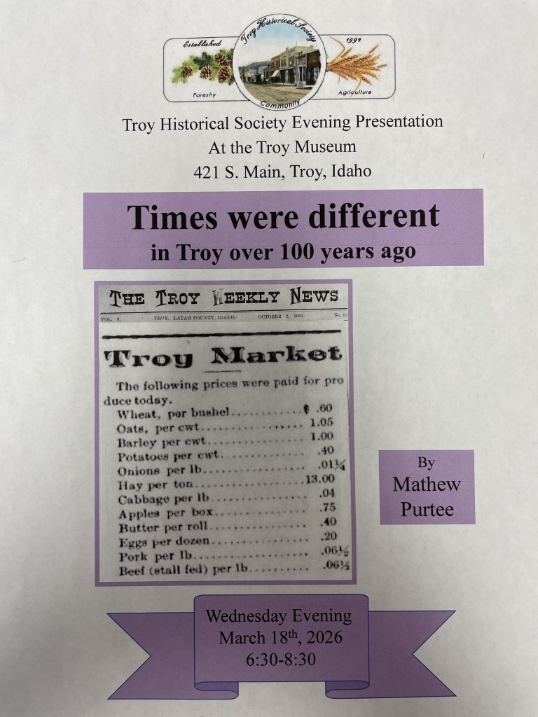 - Wednesday, 18 March, Times were Different in Troy over 100 Years Ago by Mathew Purtee