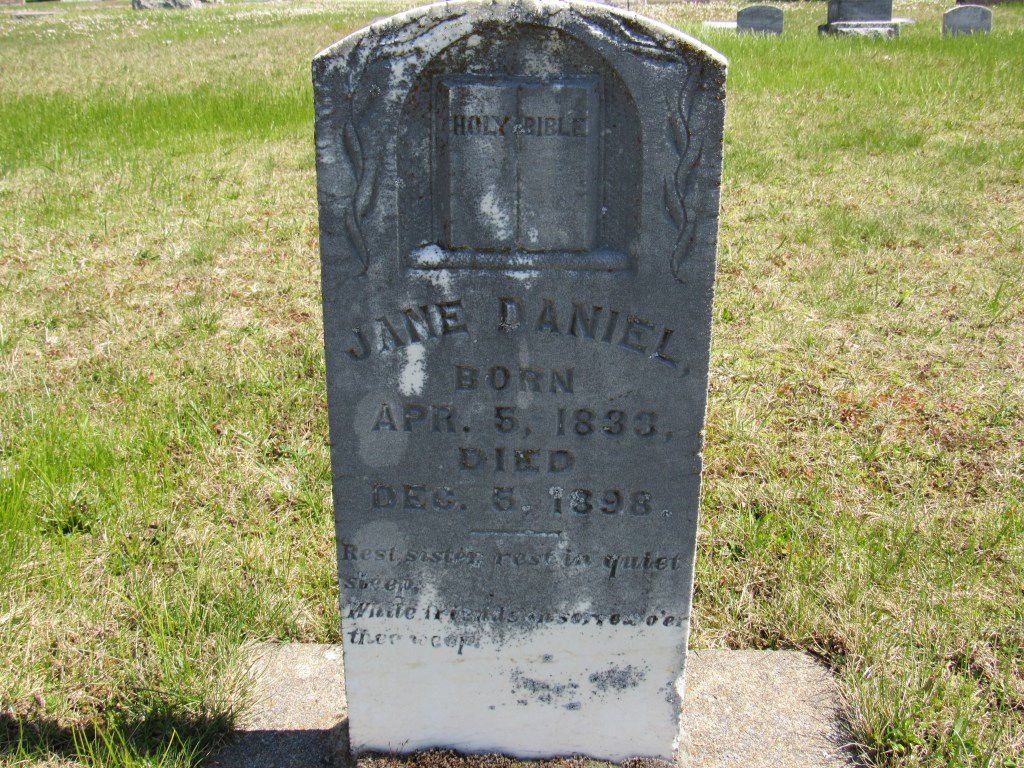 The oldest grave belongs to Jane Daniel, born Apr 5, 1833 and died Dec 5, 1898.