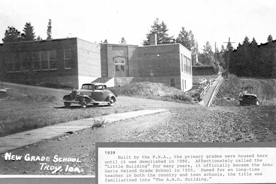 The Troy school continued to became overcrowded.  The PWA (Public Works Administration under Franklin D Roosevelt Presidency) began to build an additional Grade school for Troy. It was a brick building and was completed by July 1939.  Later in 1955, the school was officially named the “Anna Marie Oslund Grade School”